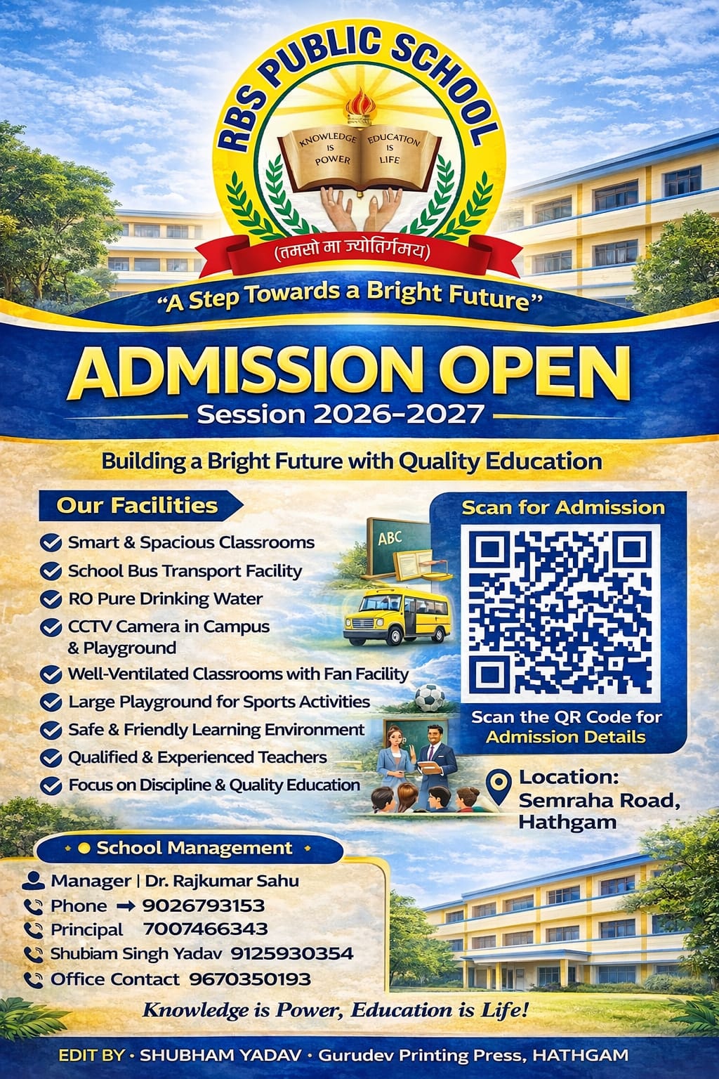 RBS Public School, Hathgaon, is a premier educational institution committed to academic excellence, holistic development, and moral values. With a nurturing environment, experienced faculty, and modern facilities, we empower students to become confident, responsible, and lifelong learners